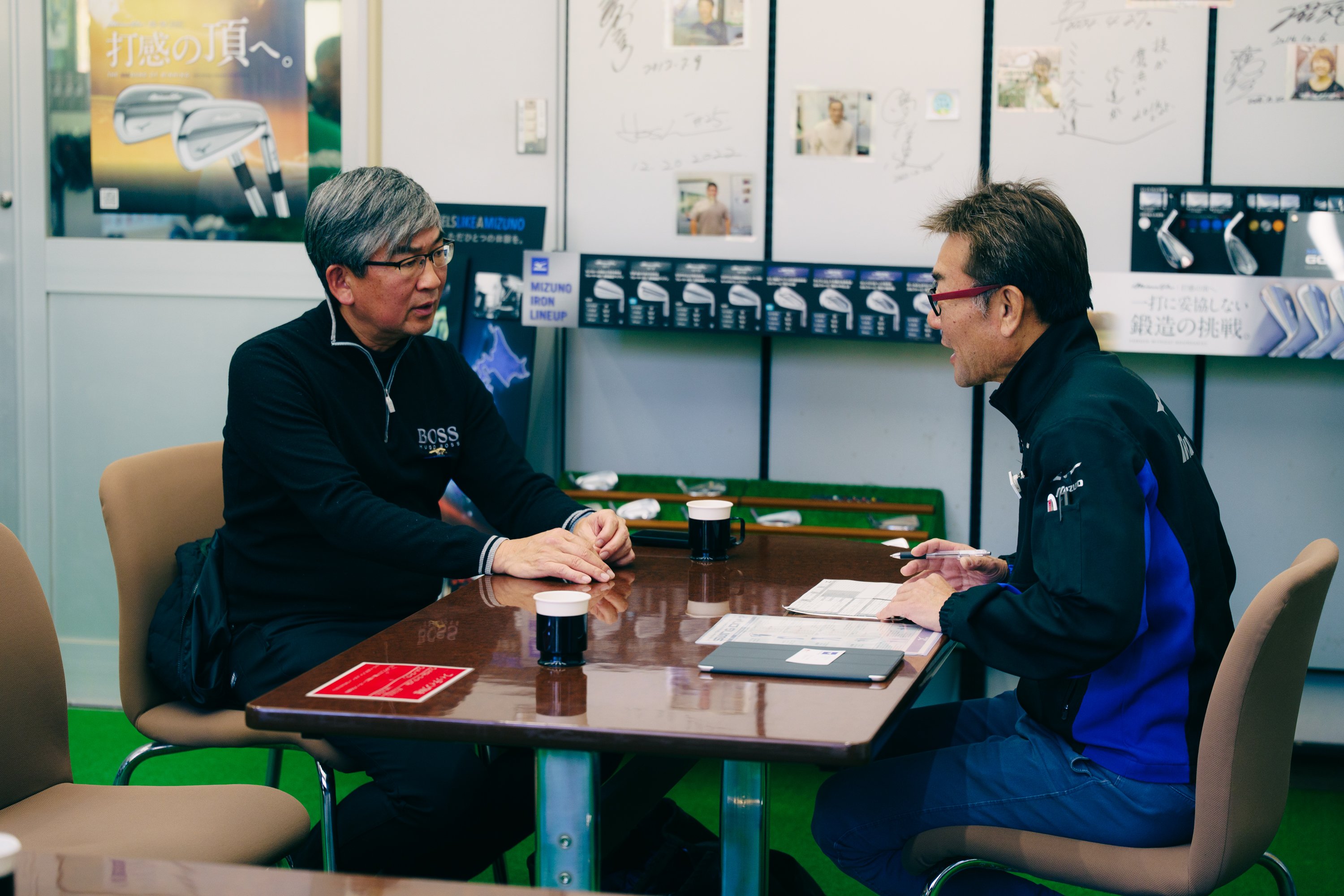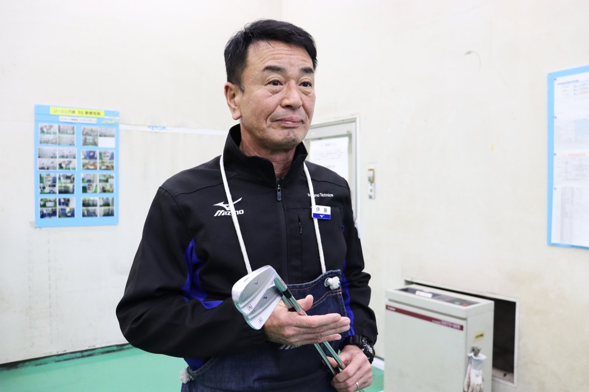 EVENT 2026.03.04 世界が認めるミズノの真髄。最高峰の職人技に触れ、自分だけの一本を作り上げた至福の1日 ヤードプログラム 「MIZUNO(ミズノ)」と言えば、日本が世界に誇る総合スポーツメーカー。野球、ゴルフからアーバンスポーツまで多岐にわたる競技に対応し、確かな品質と技術力で確固たるブランドを築いています。創業精神「ええもんつくんなはれや」に根ざした妥協のない品質と技術力は、ゴルフ事業においても高い評価。なかでも軟鉄構造アイアンは世界屈指の品質を誇り、その卓越した打感と精度は、多くのトップアスリートから絶大な信頼を獲得しています。GDOのダイヤモンド会員様の中にも、そんなミズノのモノづくりを愛する方は少なくありません。そこで今回は、ミズノの真髄に触れる「養老工場見学ツアー&カスタムクラブ作成 with ミタナラバコウタロウ」を開催。普段はなかなか立ち入ることのできないクラブ製造の現場を、ミタナラバコウタロウとともに体感いただく、特別な1日をお届けいたしました。 開催日 2025年12月10日(水) 開催場所 ミズノテクニクス養老工場(岐阜県) ※イベント開催のご案内はGDOヤードプログラムTOPページ内にてお知らせいたします。メールマガジン(GDOからのお得な情報)をご登録の会員様には、募集時にご案内メールをお送りいたします。この機会にぜひご登録くださいませ。養老工場に到着後、当日案内を務めるスタッフの自己紹介がスタート。参加者の皆さまの視線からは、これから始まる体験への期待がひしひしと伝わってきました。ミズノのスタッフとは初対面かと思いきや、すでにクラフトマンの佐竹さんと親しげに談笑される方の姿が。ミズノのセーターを素敵に着こなしていらした高橋さまです。「いつも佐竹さんにお世話になっているんです!」と笑顔で語る高橋さまは、以前から工場見学を熱望されており、今回はまさに念願叶っての参加となったようです。ここからは2チームに分かれて行動します。フィッティング担当の寺園さんと真剣な眼差しで言葉を交わす上村さまは、今回のイベントでグラインドオーダーに挑戦。理想の一本を形にするべく、細かなフィーリングを伝えていきます。グラインドオーダーとは、経験豊富なクラフトマンがお客様の細かなご要望を直接伺いながら、その場でアイアンやウェッジを研磨するサービスのこと。プロの技を目の当たりにしながら作り上げられるのは、まさに世界に一本、あなただけのための至高のクラブです。YouTubeやネット上に多種多様な情報が溢れる現代。そんななか、佐藤さまはいっそのこと「肩から肩まで振ったら、ポンっと(球が)出てくれるクラブが欲しい」と本音をぶつけます。ミスの傾向や球のつかまり具合を念入りにヒアリングしながら、佐藤さまも真剣な表情でフィードバック。細部まで突き詰めた対話を経て、いよいよその要望がクラフトマンの手によって形にされていくのです。片方のチームがフィッティングを行う傍ら、もう一方のチームは工場見学へと出発します。「話しかけ厳禁!」という鋭い注意書きが象徴するように、そこには極限の集中力で作業に没頭する職人たちの姿が。余計な会話は一切なく、ただモノづくりと向き合う音だけが流れる空間に、ミズノの矜持を感じずにはいられませんでした。工場の一角には、ミズノが歩んできたモノづくりの歴史を物語る歴代モデルがずらりと並んでいました。さらに、今回は特別に野球用バットの製造エリアも見学させていただくことに。残念ながら写真でお見せすることはできないのですが、そこには、あまりの反発性能に“飛びすぎて使用禁止になった”という、驚きの逸話を持つ「ビヨンドマックス」シリーズのバットも展示されていました。その“飛びすぎた”バットに使用されていた画期的な素材が、実は今作のミズノドライバーのフェース素材に生かされている……なんていう、驚きのお話しも。ファンにはたまらない内容に、食い入るように聞き入っていらっしゃいました。笑顔が素敵なクラフトマンの佐竹さんも、ひとたび作業に入ればその表情は「職人」へと一変します。鉄の塊からヘッドを削り出せる技術を持つのは、全国でもわずか数名。その希少な一人である佐竹さんの、抜群のセンスと卓越した技。そこから生み出される一品に、多くのゴルファーが絶大な信頼を寄せています。実は今回、もう一人のキーマンである伊藤さんも駆けつけてくれました。3年間にわたり欧州のワークショップで世界のトッププロを支え、絶大な信頼を勝ち得てきた人物。最近は次世代を担うクラフトマンの育成や社内プロジェクトにも携わり、名実ともに「マイスター」としての地位を確立しています。そんな伊藤さんが手掛けた、養老工場でしか見られない特別なモデルも見せていただくことができました。世界中のトッププロから信頼される伊藤さんが、一体どのようなクラブを削り出すのか。その一端を垣間見ることができる